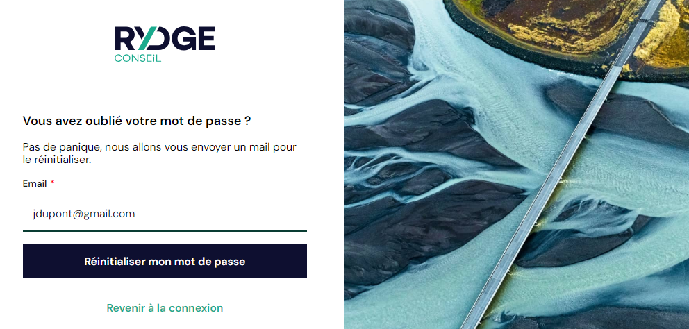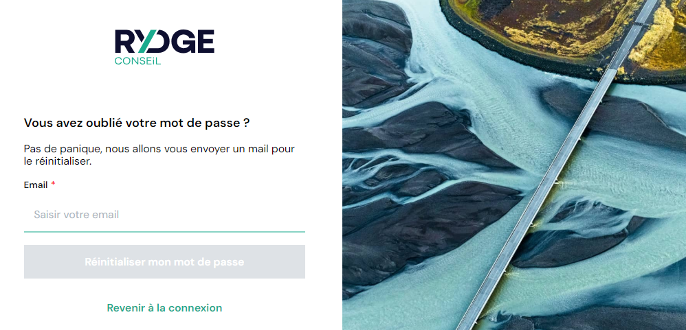 - Se rendre sur votre plateforme https://app.rydge.fr/